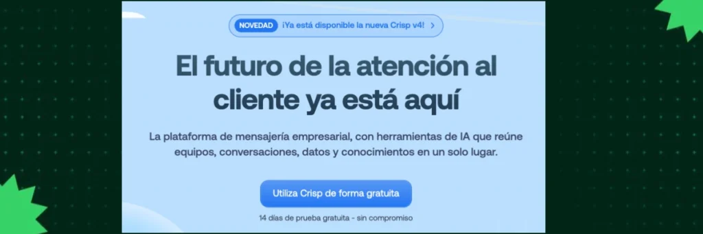 Así mismo, un chatbot bien configurado espera a que el usuario pregunte y puede iniciar la conversación en el momento oportuno, justo antes de que abandone tu web. Plataformas como Crisp facilitan este proceso al integrar la automatización con la gestión de leads, asegurando que cada oportunidad llegue a la persona correcta sin rodeos ni pasos extra.