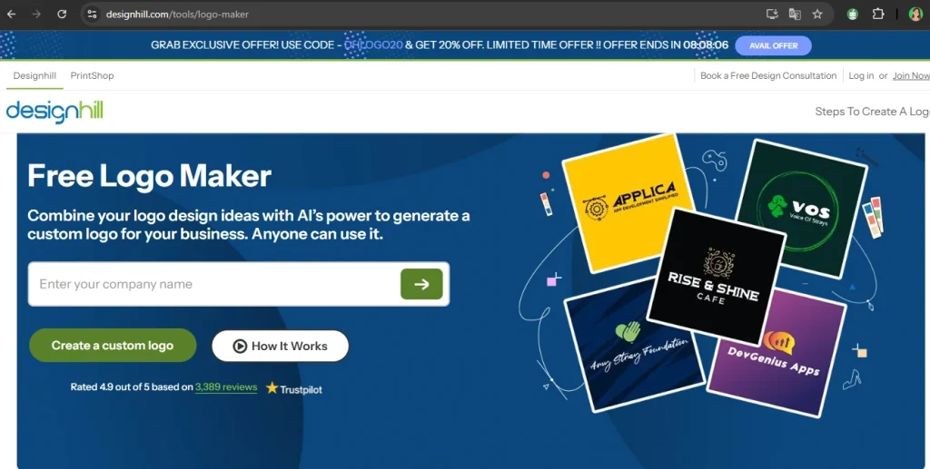 Designhill es una plataforma que combina el poder de la inteligencia artificial con herramientas de diseño fáciles de usar, ideales para emprendedores, diseñadores no técnicos y equipos de marketing. Una de sus funcionalidades más destacadas es el Logo Maker, que permite generar logotipos profesionales en pocos minutos, sin necesidad de conocimientos en diseño.