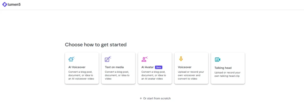 Lumen5 ofrece varias opciones para crear tu video según tus necesidades: