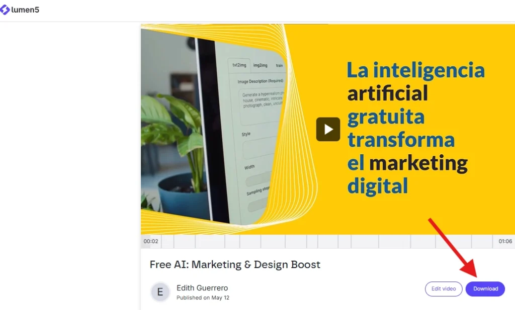 6. Exportación: Una vez que estés satisfecho con el resultado, puedes descargar el video y utilizarlo en tus canales de marketing, como redes sociales o tu página web.